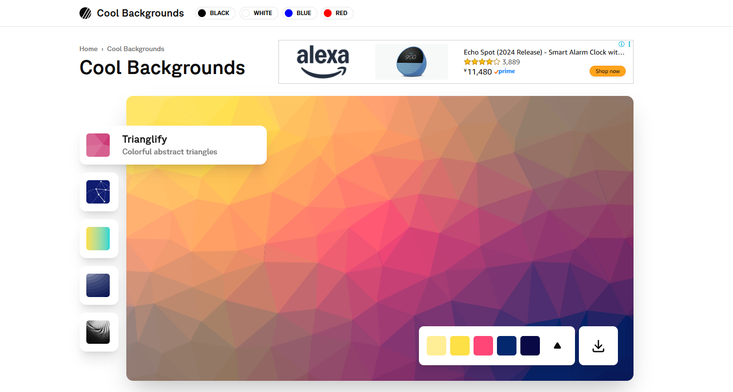 Cool Backgroundsは、Webサイトやブログ、SNSのヘッダー画像として使える「美しい背景画像」を手軽に生成できるWebサービスです。デザインの知識がなくても直感的な操作だけで、高品質な背景を作れるのが特徴です。