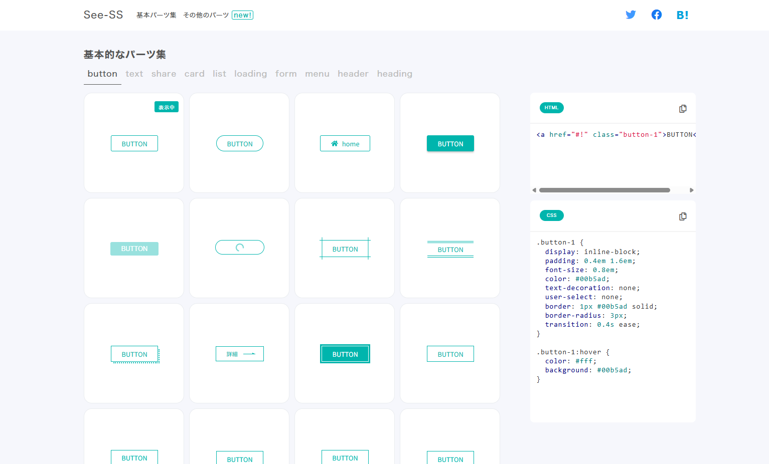 そんなときに便利なのが See-SS です。CSSのパーツが一覧で見やすく並んでいて、必要なパーツのコードをコピーしてすぐに使える使い勝手のいいサイトです。