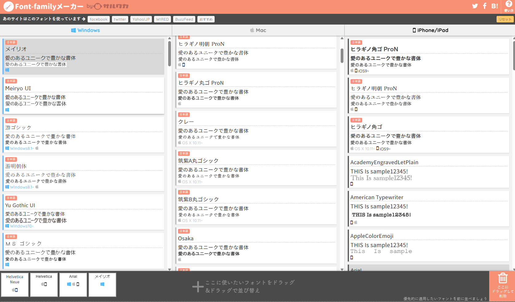 そんな時に便利なのが、サルワカくんの Font-family記事&Font-familyメーカー。